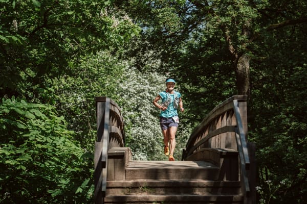 80% of the course is on trail. Trail shoes are advised but if it is dry, you will be able to complete the course perfectly adequately in road shoes. There are sections of trail where the chalk has become exposed which can make it slippery and technical in the wet. Please use due care and attention on steep downhill sections, particularly the flights of steep and rutted stairs.